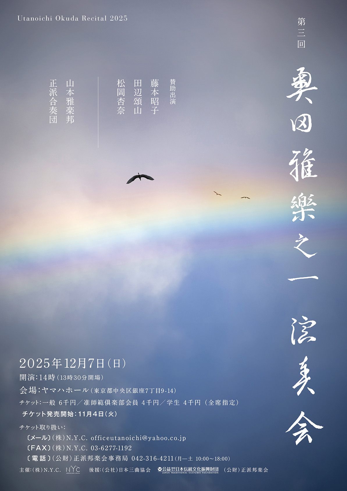 | 12月7日 | 第三回 奥田雅楽之一演奏会 日にち…2025年12月7日(日)
